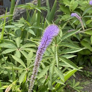 クガイソウ(九蓋草) 2025.6.22 軽井沢町植物園 穂状の紫花は風情があります。 4〜6枚の葉が輪生しています。 別名・ ベロニカストラム ジャポニカム 虎の尾 花期: 6〜7月 原産地: 日本 山野草 ベロニカの近縁種