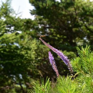 クガイソウの紫色って、実は蛍光カラー? 不思議と光って見えるんだけど。 トンボの羽もキラキラ。