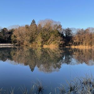 昨日、お花見🌸の後に神社にお参り♬︎ 傍のため池か堤か分かりませんが神秘的💙.•*¨*•.¸¸🎶 一画の染井吉野🌸と遠くの山🗻とでステキな景色を📸 🏷️美しき青きドヨウ 🏷【額縁シリーズ⠀】