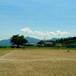 この度の大雨で大変な思いされている方に、早く青空が届き増すように。 私も青い夏、参加させてください。 先月訪れた長野県の田んぼの中に突如現れた野球場です。
