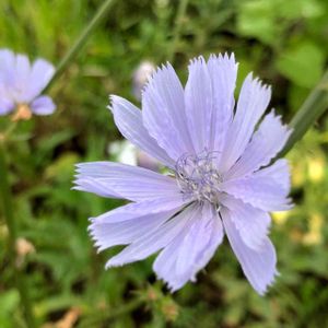 チコリのお花 息子たちが小さかった頃、ポケモンに夢中で「チコリータ」という可愛いポケモンが居たのを思い出しました😄 青い夏、参加させてください😊 ちょっと青が弱いかな…❓ 真っ青な青空が見たい〜 日本全国青空になりますように☀️