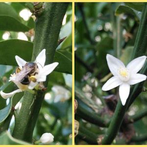 キンカンの花があっという間に開花🌼🌼あたりに甘〜い匂いが漂っていす。 今朝はたくさんのミツバチが🐝🐝🐝🐝🐝飛び交っています。 一生懸命蜜を吸っているミツバチさん😋よくみると可愛いですね💕
