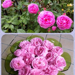 昨日☔の花遊び🎶 雨の重さで下向きになった🌹✂️。我が家での大きな器に浮かべて💞