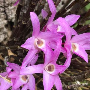 こんばんは。 ヘゴ付けのセッコクが咲いて来ました。 素敵な香りがしています💜
