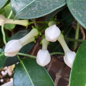 昨日の 元気ポーズの⁽⁽ଘ( ˊᵕˋ )ଓ⁾⁾のアラビアンジャスミンが開花☺️ 開花姿も可愛くて🙏💕