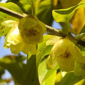 え〜〜っ🤭 まだ紅葉した葉っぱが残っているのにお花が咲いてる〜😳 これじゃあ黄色いお花が目立たない🥺 でも、蝋梅の香り大好き💕です。