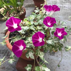 しだれ咲きタイプ 観葉あさがお 「夏だより」*・.。.:*・゜゚・*♡♬ 斑入りの葉が爽やか〜🌿