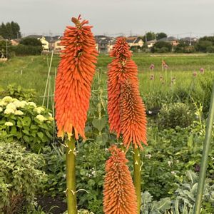 オオトリトマ 目をひくので、外にいると 「このお花の名前は何ですか?」と 聞かれる頻度高いです😊 西洋名は「トーチリリー」 確かに、たいまつの様です