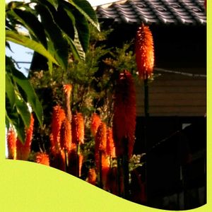 オオトリトマ 南アフリカ原産 たいまつのように見える花から別名(トーチリリー) 散歩道の畑の端に咲いていました 下から咲きすすむとオレンジから黄色に🟠🟡 インパクト大‼️ 花姿から情熱的な花言葉と思いきや‥ 「恋するつらさ」 「あなたを思うと心が痛む」 でした