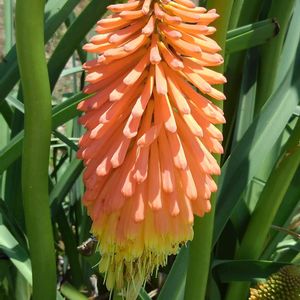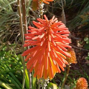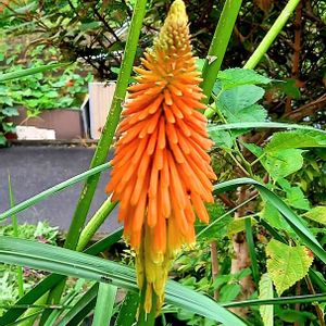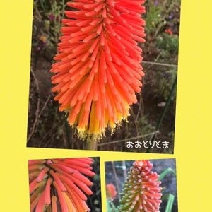 「オオトリトマ」✨🧡😀 よく通る散歩道、少し奥を観察して見つけました😳 鮮やかなオレンジ色、綺麗な色ですね〜💕😊 アロエの花かと思ってしまいました😅 ツルボラン科シャグマユリ属 別名 :「シャグマユリ(赤熊百合)」「トーチリリー」 「クニフォフィア」 花言葉 :「あなたを思うと胸が痛む」「情熱家」 「恋するつらさ」「せつない思い」