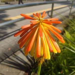 オオトリトマ Kniphofia uvaria 放浪癖があるので、フラフラと小さな小川に沿った道を進んでいたら、ド派手な花が目に飛び込んできた。 ド田舎のハズレで、そぐわない場所に見たこともないこの花が咲いていた。 鶏頭のような感じがしたが、毒々しくて、人工的に作られた、新しい品種の花だろうか? いかにも怪しい。 不審な薬物でも作るのだろうか? こう言う時はGoogle先生に訊くのが一番。 早速調べてみた。 あまり、よくわからなかった。
