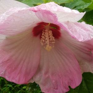 開花しました❗ 花びらの上に大粒の雨(重いわ) 晴れの日を待てなかったのね。 それを傘さして撮りに行った私(笑)☔