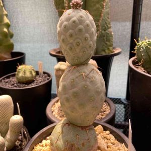 テフロカクタス ゲオメトリクス やけに斜めってますが触ると根が切れそうなのでしばらくこのまま育てます☺️ 漸く探し当てた雪だるまサボテン🌵