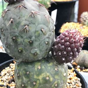 実は、先日この3つの中から 一つお連れしました。 どーれだ? この前のコブ付き君で失敗した感が拭えず、選べなかった。 行きつけのお兄ちゃんの意見を参考に 右上の方にもテフロカクタスいてましたが、棘! 名前も読めなかった😅