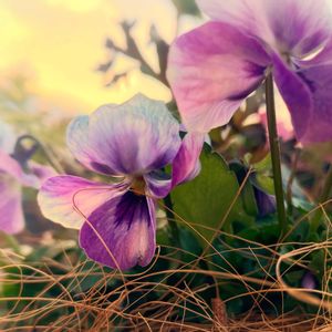 ビオラ🩵💜 薄いブルーとパープルのお花 可愛いよ🐾 ♪︎♪︎(*´▽︎`*)ノ゙•*¨*•.¸¸🌅夕暮れ時