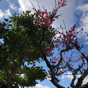 我が家の庭の、片隅に、 3mくらいのすらっと伸びた木に 真っ赤な花が咲き、まだ蕾もたくさん。 何という花かしら、教えてください^ ^