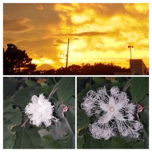 上、今日の夕焼け、with富士山🗻 下左3分前↔下右3分後 見る見る咲いてくのが面白い👀 九月に入ってもまだ開花中 実もなってました🍈