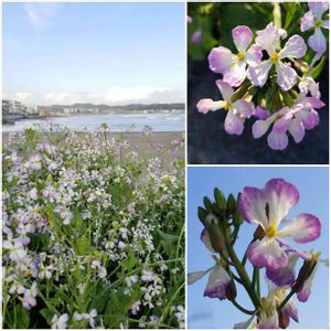 今日のお花、ダイコン の仲間、ハマダイコン(浜大根) 左は過去にも投稿しましたが、もうすぐ大河も終わるので、鎌倉・由比ヶ浜をもう一度ということで🌊