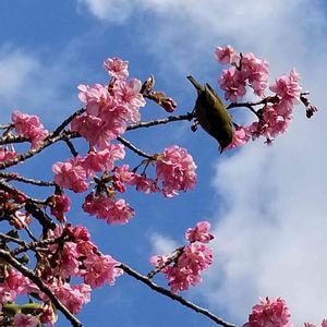 こんばんは😊 今日は天気も良く、寒くもなく、散歩・ジョギングであちこち出掛けたので、GS写真の在庫が増えました。ゆっくり投稿したいと思います✨桜も咲いてきて、メジロさんのごちそうに🌸この桜、寒緋桜?河津桜?、メジロさん教えて👀