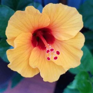 小ぶりのハイビスカス🌺 初めて見たかも?🔰 でも、写真じゃ大きさ分からないですね😓 夕方ジョギング、海沿いのお店の軒先にて🏃