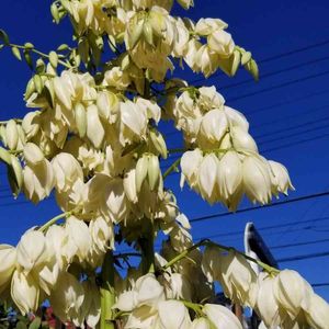 本日の青空5連発、その5 何が咲くのか楽しみでした 青空が濃い なんだこれ?👀 →アツバキミガヨラン(厚葉君が代蘭)💡 大胆なお名前🇯🇵 しかし、北米原産とか🇺🇸