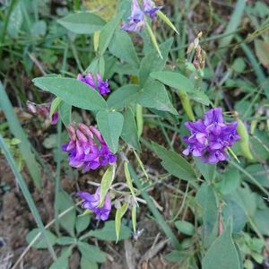 ナンテンハギ(南天萩) ですかね~🤔 紫色の小さな花が集まって咲いていました🌼 クサフジとかに似ていますが葉の幅が広いです🍀 ハギという名がついてるけどマメ科らしいです😅