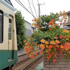 おはようございます 大雨心配です 皆様どうぞご安全に⛑️ ノウゼンカズラは遠目からは魅惑的に見えても、近付いて見るとなんとなく色が冴えなくて撮影する気が失せます😜 遠目からがベターですね👀 6/18撮影、江ノ電と🚃