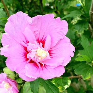 おはようございます☀ 久しぶりの朝から☀️になり、雲は多いけど青空も見えてます😃 ジョギングコースの色違いのムクゲを📸