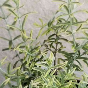 ご近所で生き生きと茂っていたので… 花は終わってしまったようで、葉っぱ🌿だけですが… 葉や花の形がローズマリーに似た美しい常緑低木。 ローズマリーに比べてウエストリンギアのほうが枝が柔らかで、繊細な雰囲気。