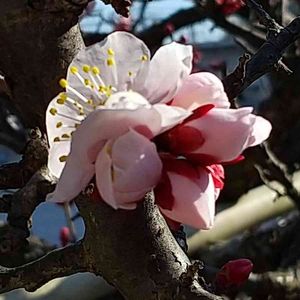 穏やかな晴れ☀️の週末土曜。我が家の6品種の梅のうち、開花中は3品種に^_^。品種名不明のこのピンクの花🌸が1番好きかも☺️、果実の利用価値は低いが\(//∇//)\。今日もミツバチ🐝が飛び交いそう👍。