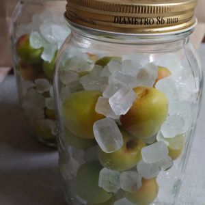 追熟させた南高梅、部屋中がとろけるような香りでいっぱいに🧡 梅の実を水の中に入れるとサッと水晶のような膜が張りますよね✨ この瞬間がとても好き😊