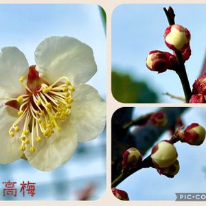 ウメ 昨日はお日柄もよく、用事を済ませた足で小さな公園に探梅に☀たくさんの梅の中から本日は白と淡いピンクの花梅と実梅をセレクトヽ(^o^)丿 ⦿月影:野梅系・青軸性 : スッキリと萼は緑💚♡ ⦿曙:野梅系・野梅性 : 小さなピンク🩷 ⦿白難波:野梅系・難波性 : 勢い良く八重に重なっている ⦿花香美:野梅系・野梅性:実梅 : 梅園の中でも一番香り豊かでした (人*´▽`)+・。* ⦿南高:野梅系・野梅性 : 実梅 : 梅干しといったらこれだな!