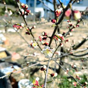 こんにちは🍀 ここ数日の暖かさで☀️ ようやく 庭の白梅が 花開き始めました😊 🌸南高梅(Prunus mume)
