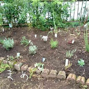 最近、作り直したハーブガーデン。 しばらく留守にしていたので、どうなっていることやら(((^^;)