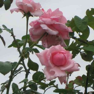 おはようございます😃 今日は、台風の影響からか雨模様です☔️ そんな中優しいピンク色の羽衣さんがひっそりと咲いてくれていましたょ^_^♡♡♡ こんな優しい色合いの薔薇さんには、ひと時の安らぎを貰っています🤗💕💕💕 感謝ですネ^_^♡♡♡