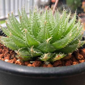 祖父が育てていた羽衣。祖父が亡くなってからは僕が育ててます😌 最近は葉先の枯れが少なくなってきて形も安定してきました😊 ちなみに、僕の育てているハオルチアの中で1番大きいです😅💦