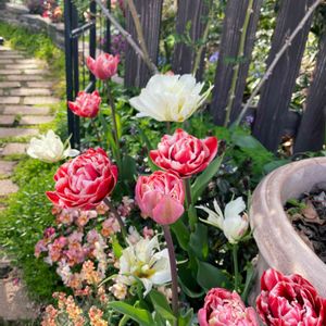 お洒落なチューリップの咲く、素敵な小道 京王フローラルガーデンアンジェ内のソフィアガーデンにて