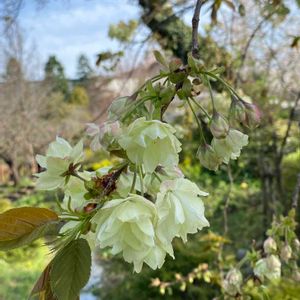 鬱金桜 京王フローラルガーデンアンジェにて 咲き進むとほんのりピンクがかってきます。