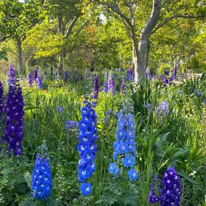 アンジェの今は、ブルー✨✨ シラーカンパニュラータの絨毯に、深いブルーから水色、パープルのデルフィニウムが咲き誇っています。ブルーのグラデーションに包まれて極楽極楽…💕 京王フローラルガーデンアンジェ4/21 入り口に『閉園まで40日』のカウントダウンが悲しいです。