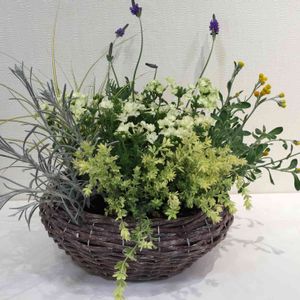 今日は楽しみにしていた寄せ植え教室へ行ってきました😊😆👍 「春を彩るコンテナガーデン」がテーマで こちら出来上がった私の作品💐 う〜〜ん、、、ちょっと横に広がり過ぎたかしら🤔(体型がこんな所にも反映されるのかしら❓笑) 色の組み合わせがとてもステキ✨✨✨ 花の名前を挙げておきます🌼 🌸バーベナ ラナイ ライムグリーン 🌸レースラベンダー 🌸クリソセファラム 🌸ロータスブリムストーン 🌸カレックス ジェネキー