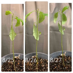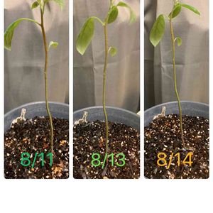 アボカド🥑観察日記4 どんどん成長しています。 朝と夜で枝の位置が違ったりして生きてることを実感します。 光に当たりすぎて乾いてしまうせいか、日中は葉がまるまってしまうようです。 (寝て朝方には葉が元に戻ります)