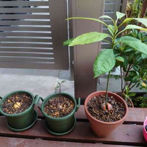 こんにちは🌱🌱 食べては埋めの繰り返しで🌱 いっぱい出て来てます🥑 もう少ししたらちゃんと❗️ 鉢植えに植え替えね🥑