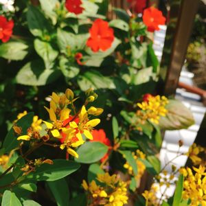 コウシュンカズラとサンパチェンスがビビット。残暑の中でもひときわ眩しい✨