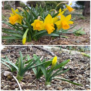 ミニスイセン 「ティタティタ」と教えてもらいました✨ 水仙の中で一番先に咲いてます(*゚▽゚)ノ🌼 小ささが伝わらないのが残念♪ 普通の水仙の三分の一ぐらいですね🎶 可愛いのよ💕