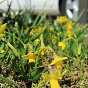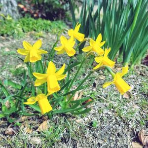 近所の公園で (2/25) 小さくて可愛らしい水仙 草丈15cmほど 幼稚園の子供たちみたいです🐥🐥🐥
