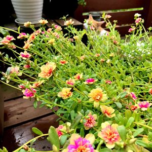 こんにちは☀️→☁️ 昨日投稿予定だったポーチュラカ「ローズマジシャン」(多分😅) 20日ほど前に某フリマサイトでカット苗を購入したポーチュラカのお花が咲きました😍🎶 ポーチュラカを育てるのは初めてですが、可愛いお花ですね~😆💕 今の時期にお迎えしてしまいましたが、鉢と小さなプランターに挿しているので、寒くなったら室内で管理すれば冬越しできるかな~🤔
