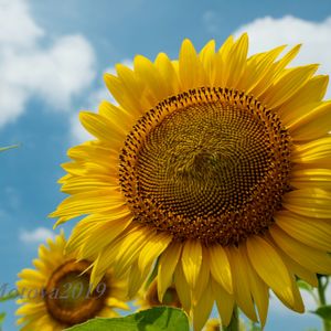 2019.8.10 神奈川県座間市の座間ひまわりまつり 後ろの方(畑の中)は日差しが届かないのかまだまだつぼみが多かったですが 探せば大きな花もありました。