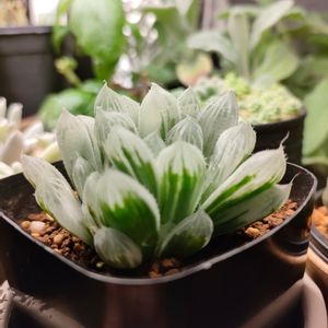 12月初旬にお迎えしたコ ハオルチア 白琥珀斑 H.pilifera錦 最近ちょっと開き気味かなぁ〜 ハオルチアさん達は頂いてきた当初よりむっちり感が無くなってきたり、葉が凹んでしまったり、まだまだお世話の仕方がピンと来なくて自信が無いです💦 しっかり観察🧐💨💨