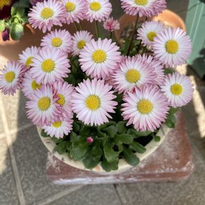 『イングリッシュデージー ロリポップ🍭』 📷玄関ポーチ🌿にて☺ 今年もお迎えしましたロリポップ💗 しかも、3株植えです⸜( ˶>ᴗ<˶)⸝🎶 これから晩春まで、たくさん咲いてくれることを期待しています🍊