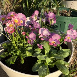 これから初夏まで楽しむ寄せ植え作りました第二弾! ビオラと他の花の寄せ植えを2パターン違うもので植えました。 写真①ビオラ「ぴーちももか」&イングリッシュデージー「ロリポップ」&ワスレナグサ 手前のワスレナグサはまだ小さいですが、デージー&ぴーちももかが春まで華やかに彩ってくれます。 写真② 夢咲パンジー「青かすみ」&サクラソウ&ノースポール ノースポールがまだ若い苗なので、隠れてしまっていますが、花芽があるのでもうすぐ出てきてくれるはず。 夢咲パンジーは店頭POPによるとジュンテンドー×見元園芸さんの苗だそうです。今回植えたビオラ&パンジーでは唯一のフリルタイプです。